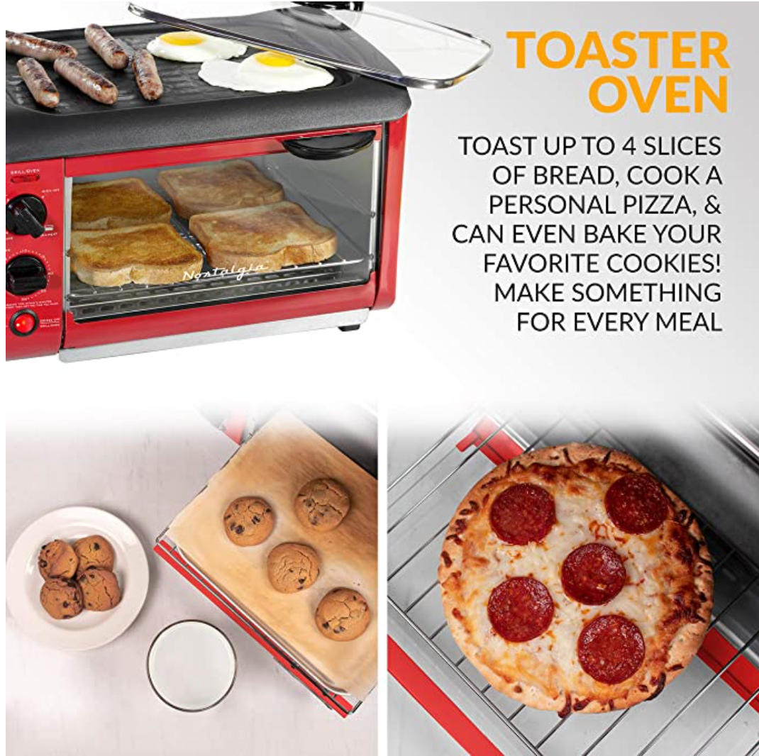 FÁCIL LIMPIEZA: como si cocinar no fuera lo suficientemente fácil, la bandeja del horno, la rejilla de alambre, la bandeja para migas y la plancha antiadherente son extraíbles, lo que facilita la limpieza.